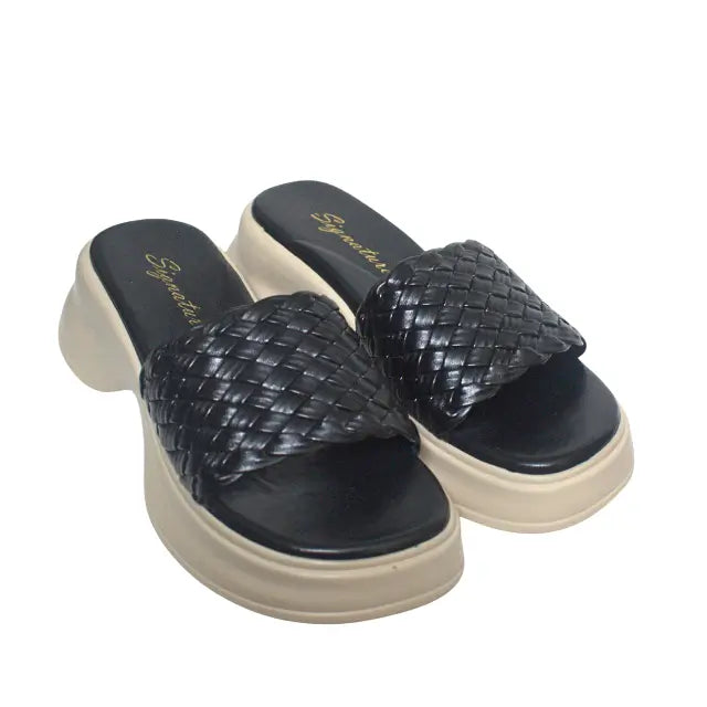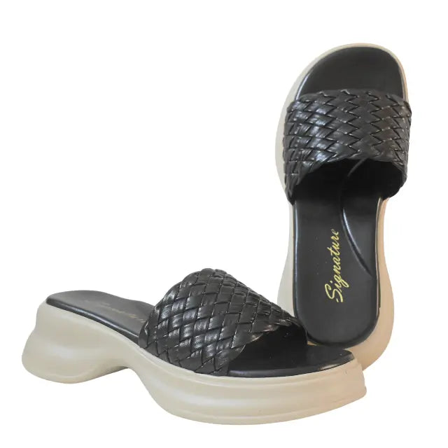 Black Mirage keeps it simple and sharp โ black summer sandals for women that donโt follow trends, they set them. The woven strap brings just the right texture, while the thick, cushioned sole keeps you moving without fuss. Slip them on for a casual day out, or let them ground a dressier look. No shine, no noise โ just solid, everyday sandals that speak for themselves.