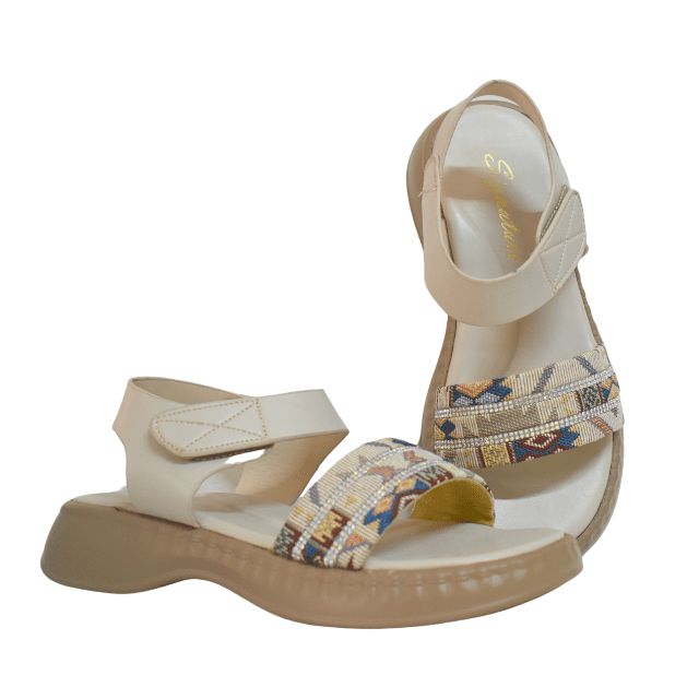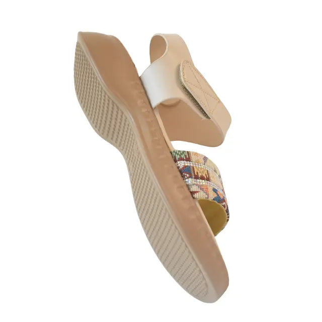 Sahara Bloom - Boho Style Sandals, is a celebration of effortless style and everyday comfort. Crafted with a neutral base and finished with multicolored woven straps, these sandals add a subtle boho touch to any look. The soft, cushioned sole makes them ideal for long days โ whether youโre out shopping, meeting friends, or pairing them with a casual shalwar kameez for a more traditional vibe. Perfect for women in Pakistan who appreciate style that doesnโt try too hard, Sahara Bloom is that go-to pair youโll reach for when you want to feel easy and put-together at the same time.